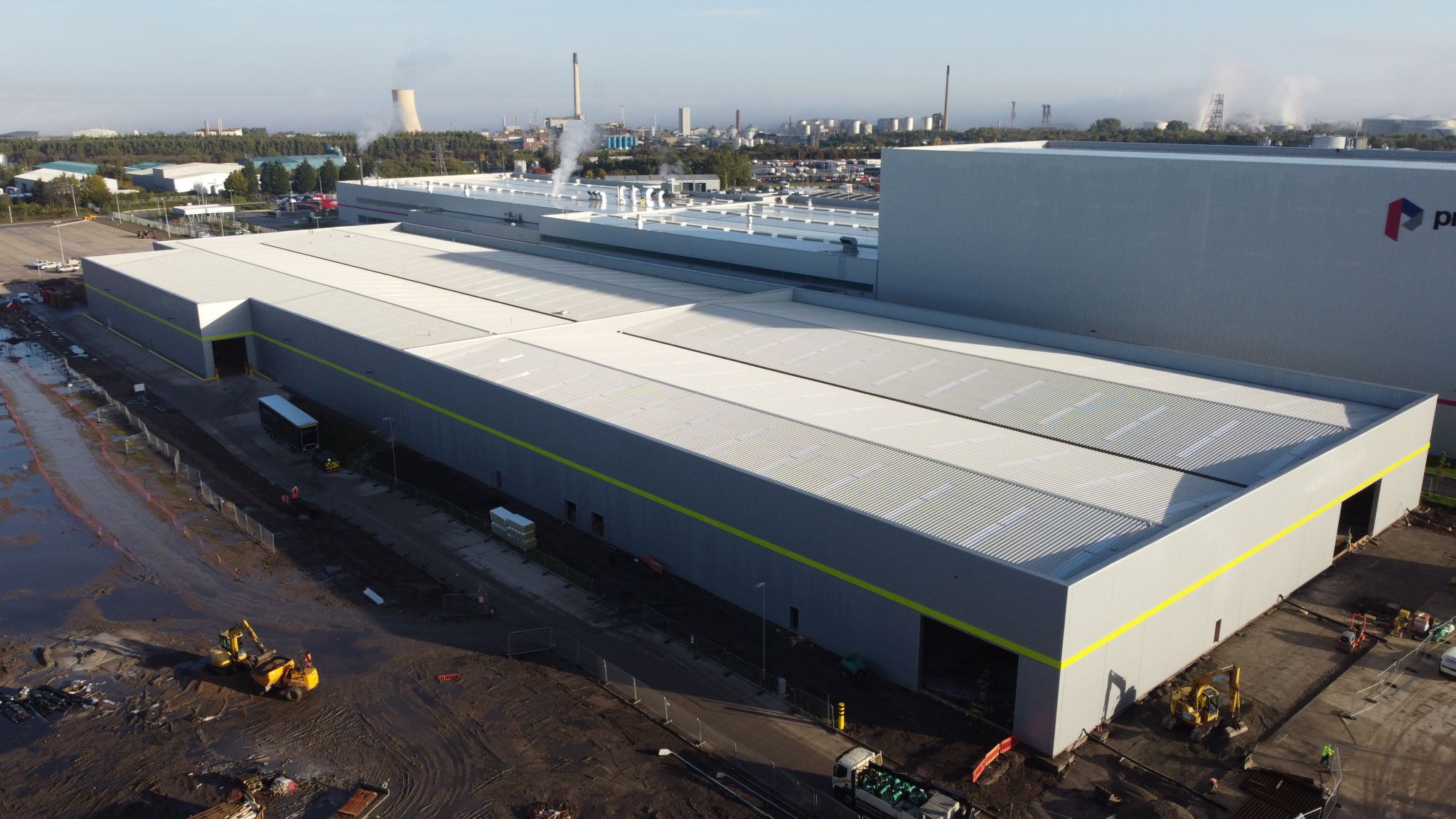 Mascot successfully delivered VP12a, a multi-phase development comprising a 16,000m² cardboard box manufacturing facility, connected via a high-level link bridge to an adjacent factory. The project also included a 2,000m³ attenuation pond and extensive lorry parking infrastructure.